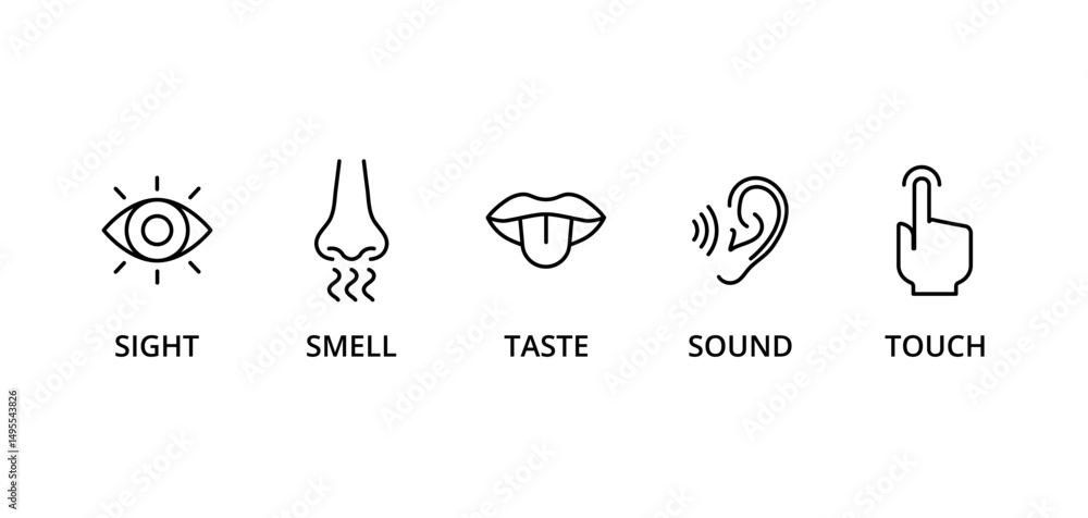 5 senses icon set: taste, sight, touch, smell, and sound #1495543826