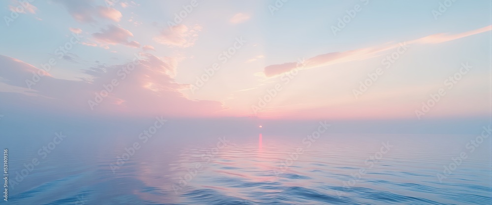 Serene Pastel Sunset Over Calm Ocean with Mirror Reflection for Mindfulness and Wellness Background #1531409316