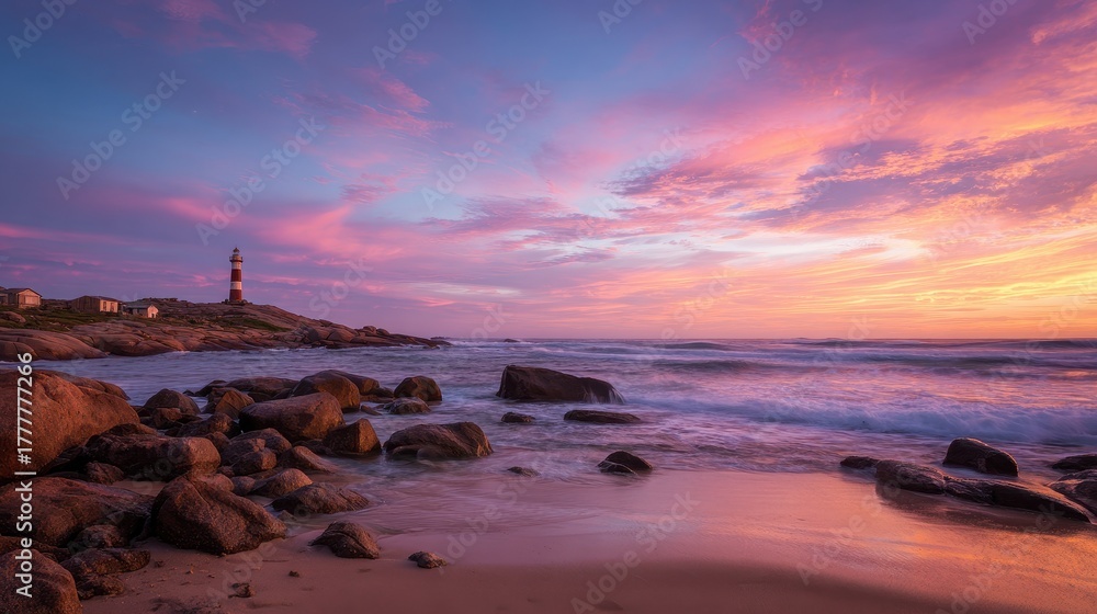 Serene Sunset at Cabo Polonio: Long-exposure Lighthouse and Waves Captured Along Uruguay's Colorful Beach Landscape #1777777266