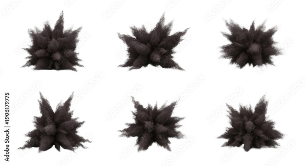 series of dust explosions on white surface displaying particle effects digital art and effects #1906179775