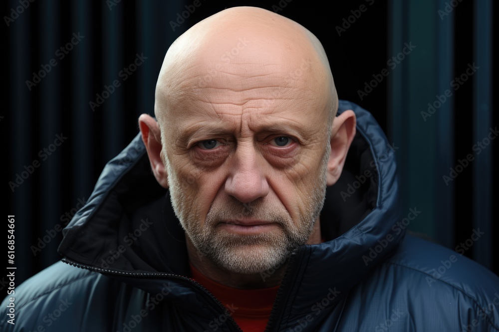 Serious bald Eastern European senior man looking at the camera #616854661