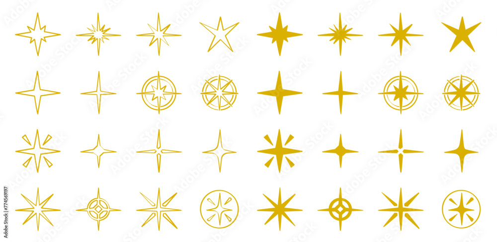 Set de ilustraciones decorativas dibujadas a mano de estrellas color dorado. Vector #774569197