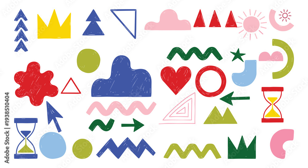 Set of 40 Abstract Hand-Drawn Geometric Shapes and Icons Vector #1938510404