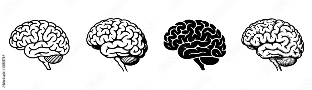 set of anatomical human brain brain side view vector illustrations, neurology and cognitive science #1511955739