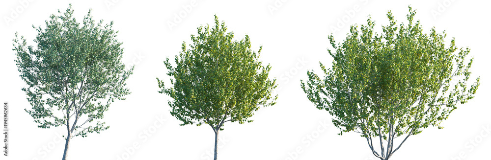 Set of Betula utilis jacquemontii (Himalayan Birch) frontal street trees isolated png on a transparent background perfectly cutout #1945962634