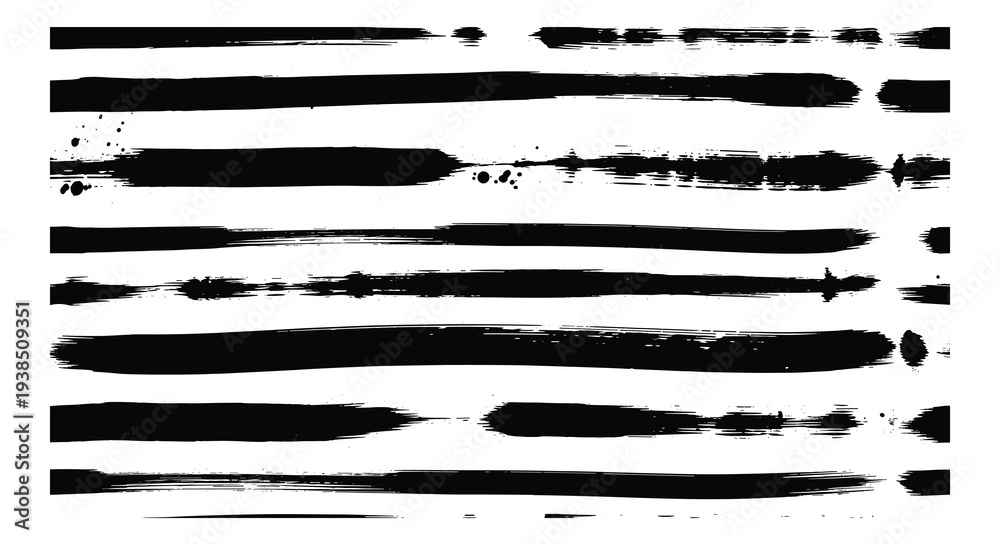 Set of 10 Black Grunge Ink Brush Strokes Vector #1938509351