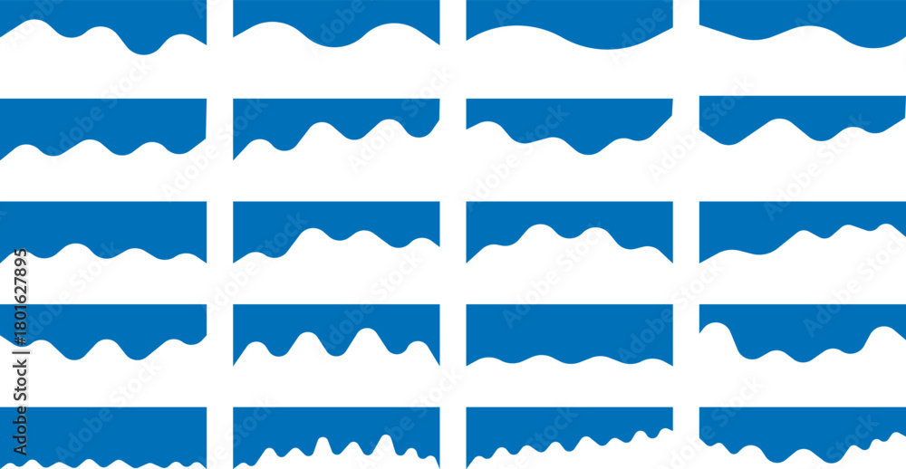 Set of blue wave shapes and dividers for web design, backgrounds, and creative projects. Perfect for banners, headers, and water-themed compositions. Wave shape design. Blue wave divider. #1801627895
