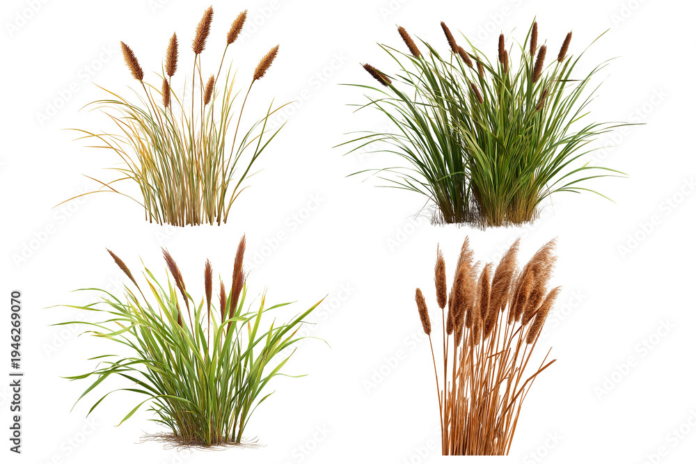 set of bulrush reeds isolated on transparent background - design element cut-out object #1946269070