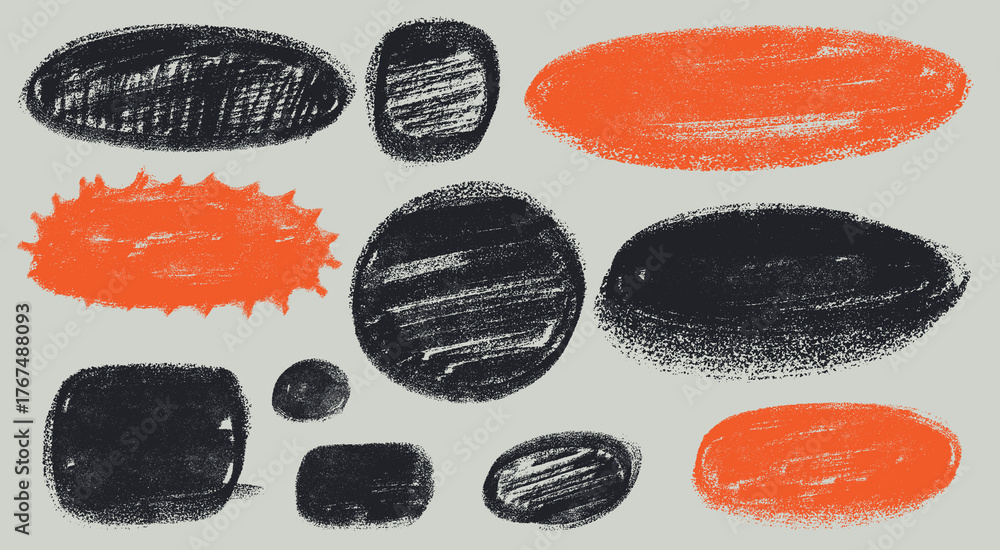Set of charcoal drawing black ellipses, ovals, bubbles to circle, highlight text. Doodle style round outline shapes. Vector rough crayon circles. Hand drawn doodle elements, shapes for message notes. #1767488093