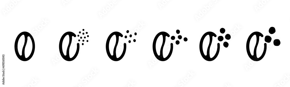 Set of coffee bean icons of different grinding coarse medium and fine grind #698561043