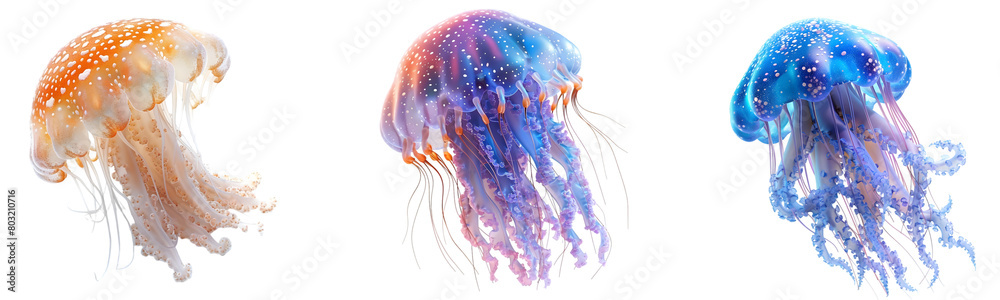 Set of Colorful Jellyfish on Transparent Background #803210716
