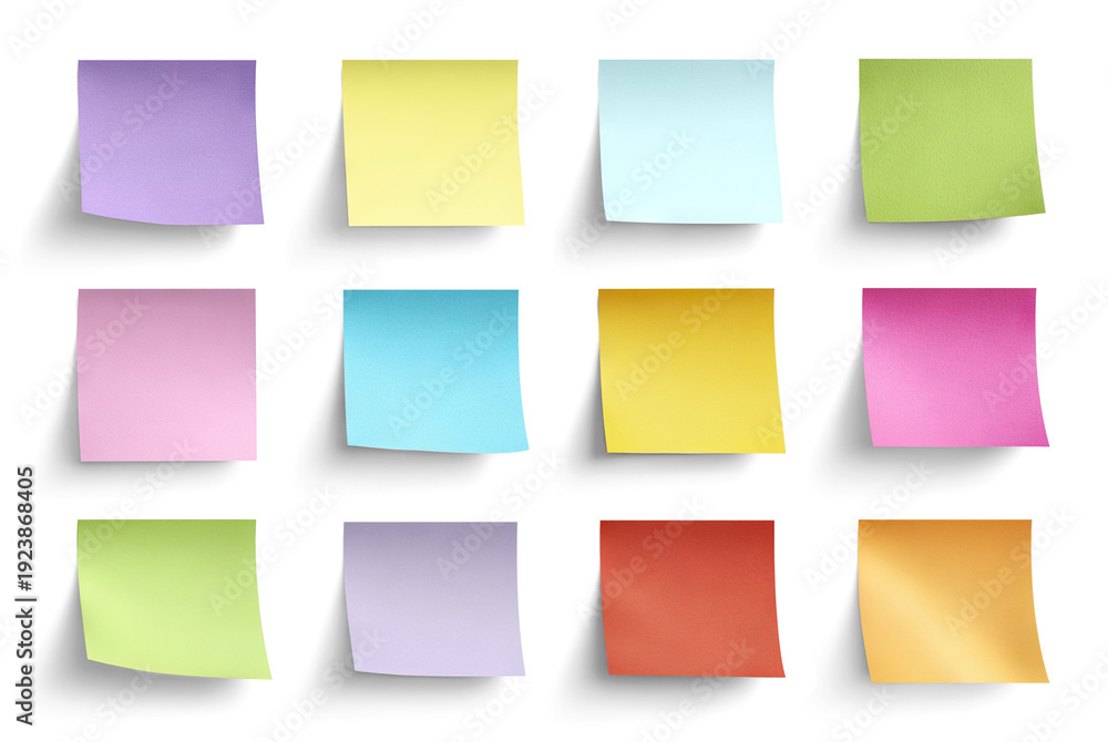 Set of colorful sticky notes grid layout, isolated on transparent cutout background #1923868405