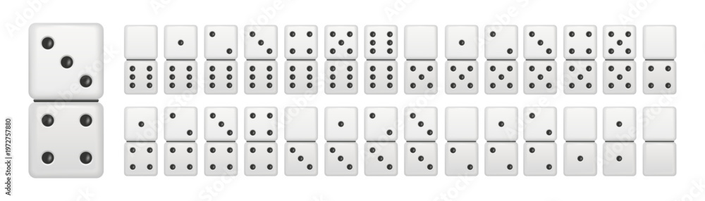 Set of domino tiles and dice pieces in different combinations. White game elements #1972757880