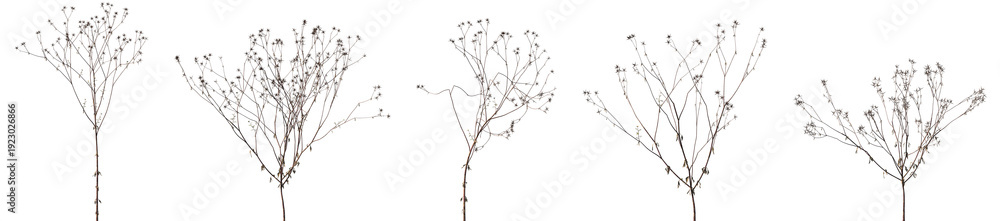 Set of dry Bidens parviflora isolated frontal png on a transparent background perfectly cutout #1923026866