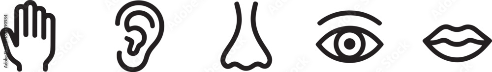 Set of five human sense organ icons including hand touch nose eye ear and mouth lips #1897890984