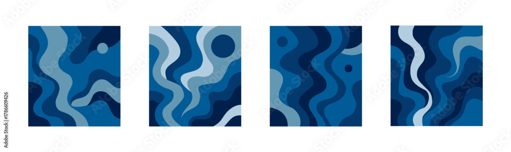 Set of Four Blue Toned Abstract Wavy Background Patterns for Use as Page Dividers or Headers #1786609426