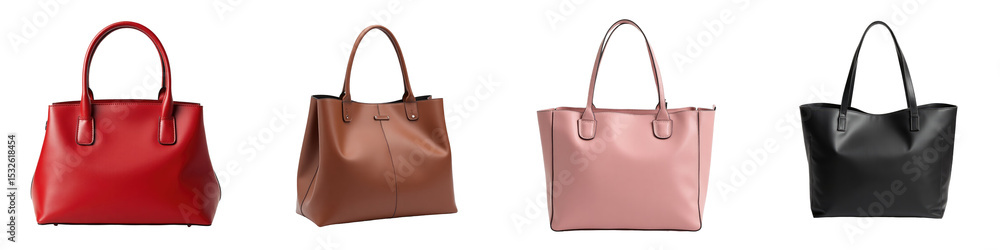 set of four luxury handbags for women in various colors including red, nude, pink and transparent isolated on a transparent background for fashion purposes #1532618454