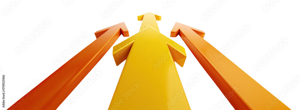 Set of four orange arrows pointing upward in a 3D glossy style, isolated on transparent cutout background #1709525866