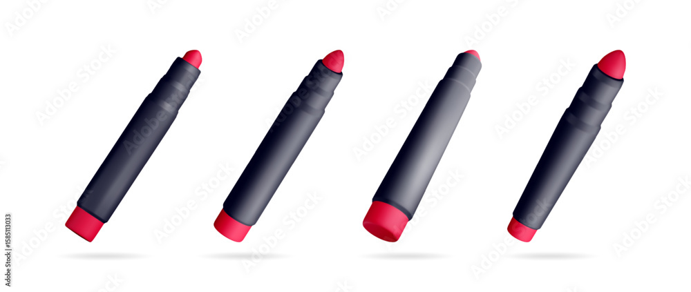 Set of four vibrant red and black marker pens, ideal for school supplies, art, and creative design projects. #1585113033