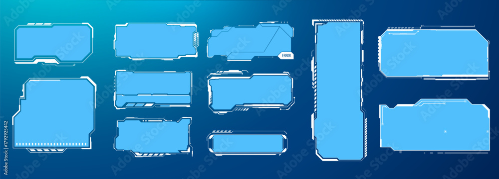 Set of futuristic blue HUD interface frames and empty UI panels on gradient technology background #1792925442