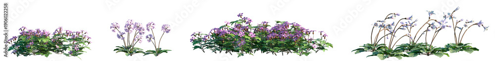 Set of Geranium robertianum and Corallodiscus lanuginosus flowering frontal isolated png on a transparent background perfectly cutout #1906022258
