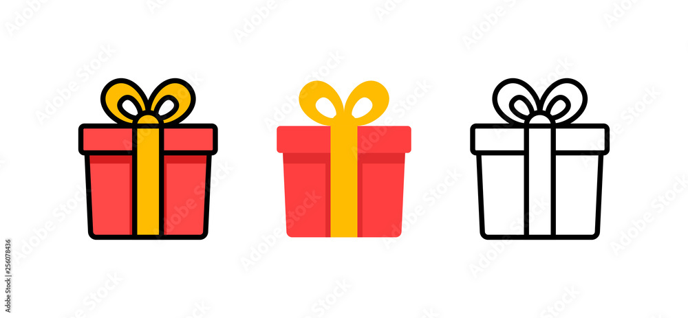 Set of gift box with ribbon. Box line icons. Surprising gift box. Vector illustration. #256078436