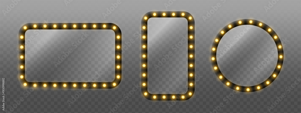 Set of glowing frames with light bulbs for cinema, theater, and entertainment signage design #1930998882