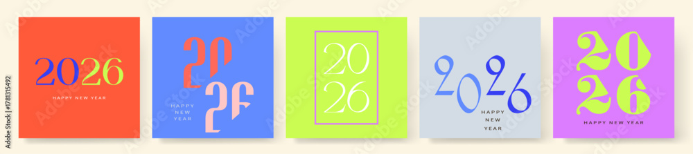 Set of new year 2026 logo text design. stock illustration. 2026 logo concept for calendar, poster, flyer, banner. Modern design for calendar, invitations, greeting cards. #1781315492