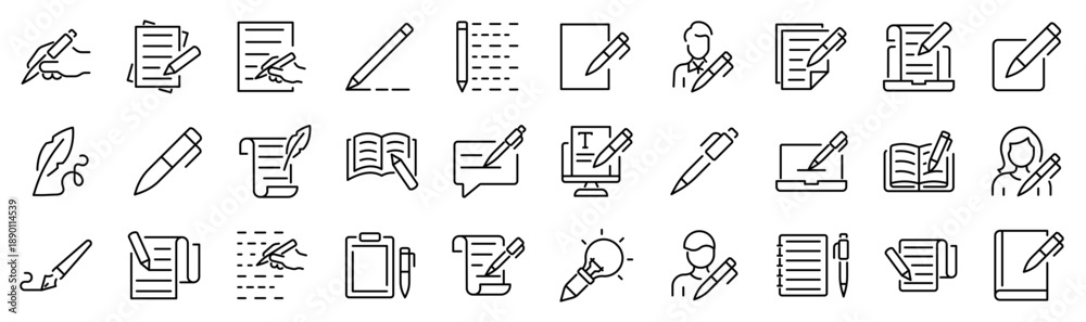 Set of 30 outline icons related to write. Linear icon collection. Editable stroke. Vector illustration #1890114539