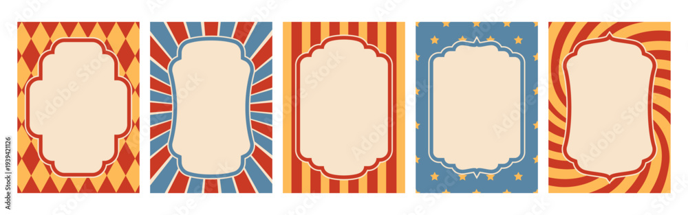 Set of 5 retro circus empty seamless poster in flat style. #1939421126