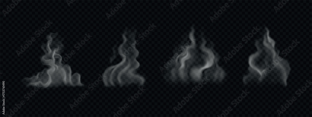 Set of smoke from hot food, coffee. Vector realistic cooking steam isolated on transparent background #1753761490