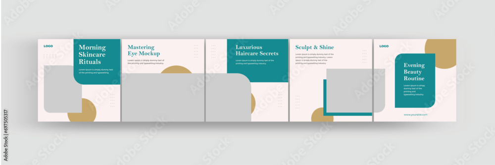 Set of social media carousel template for beauty and skin care, Instagram carousel banner design for content creator #697505317