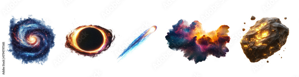 Set of space design elements like nebula, black hole, meteor. Isolated on transparent png #1794797568