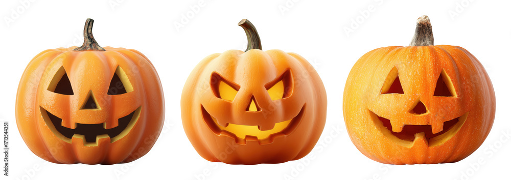 Set of three carved Halloween pumpkins isolated on transparent background #1713544351