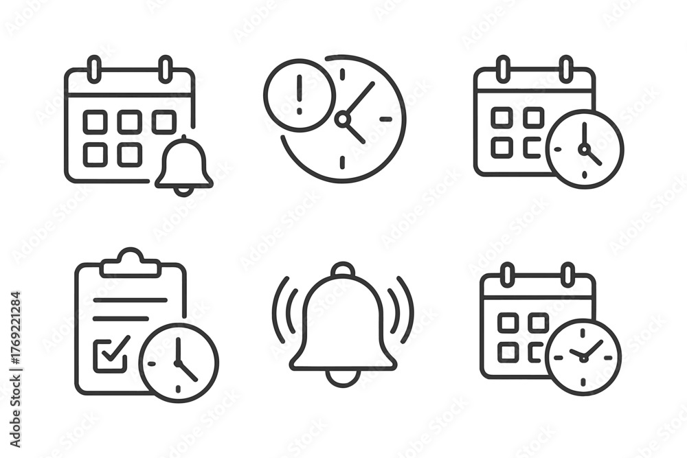 Set of time management icons featuring calendar, clock, and bell symbols #1769221284