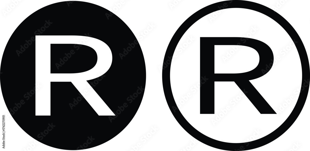 Set of trademark r circle icon set, Registered trademark symbol, line art vector illustration. #1762270901