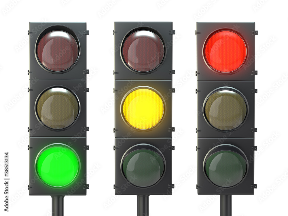 Set of traffic lights with red, yellow and green lights #38513134