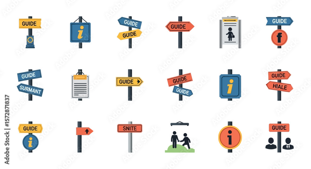 Set of Vector Icons Collection of Directional and Informational Signage Icons with Guide and Information Symbols. Vector Illustrations. EPS Editable #1572871837