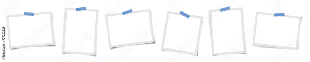 Set of vintage photo frame with adhesive tape, white background. Vintage style. Vector illustration with adhesive tapes. 3D vector EPS10 Mockups. Retro Photo Frame Template for your photos or text #977202229