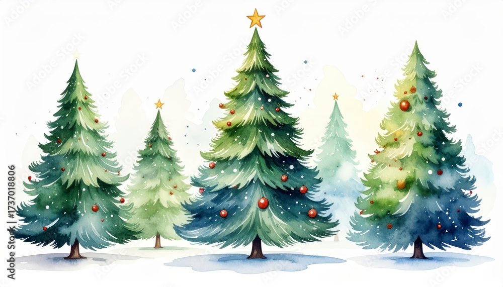Set of watercolor christmas trees hand drawn on a white background. Christmas card. Festive evergreen artistic xmas fir holiday greeting handmade paint white backdrop season card. #1737018806