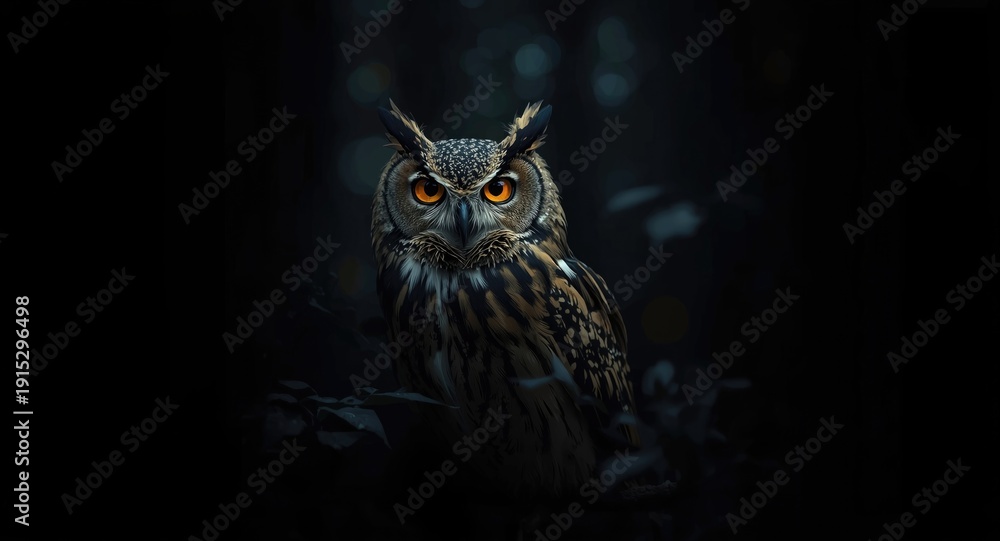 Sharp high resolution photo of owl staring against a dark Halloween setting #1915296498