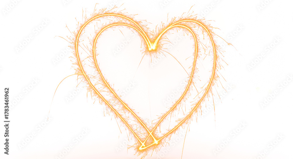 Shimmering Heart: A delicate, radiant heart, composed of glittering sparks, gently glows against a pristine background, embodying love, warmth, and the beauty of light. #1783461962
