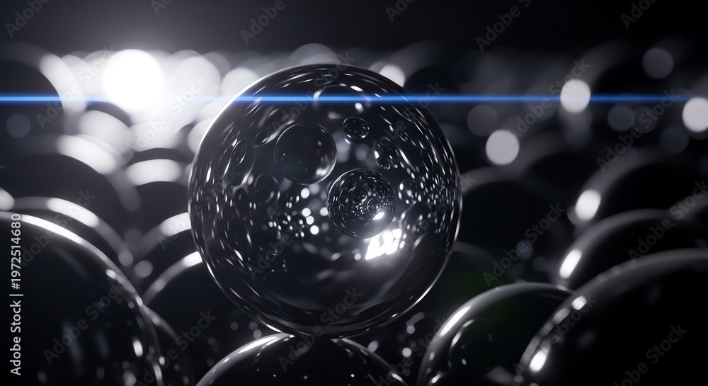 Shiny metallic balls, reflective spheres, laser beam, futuristic technology background #1972514680