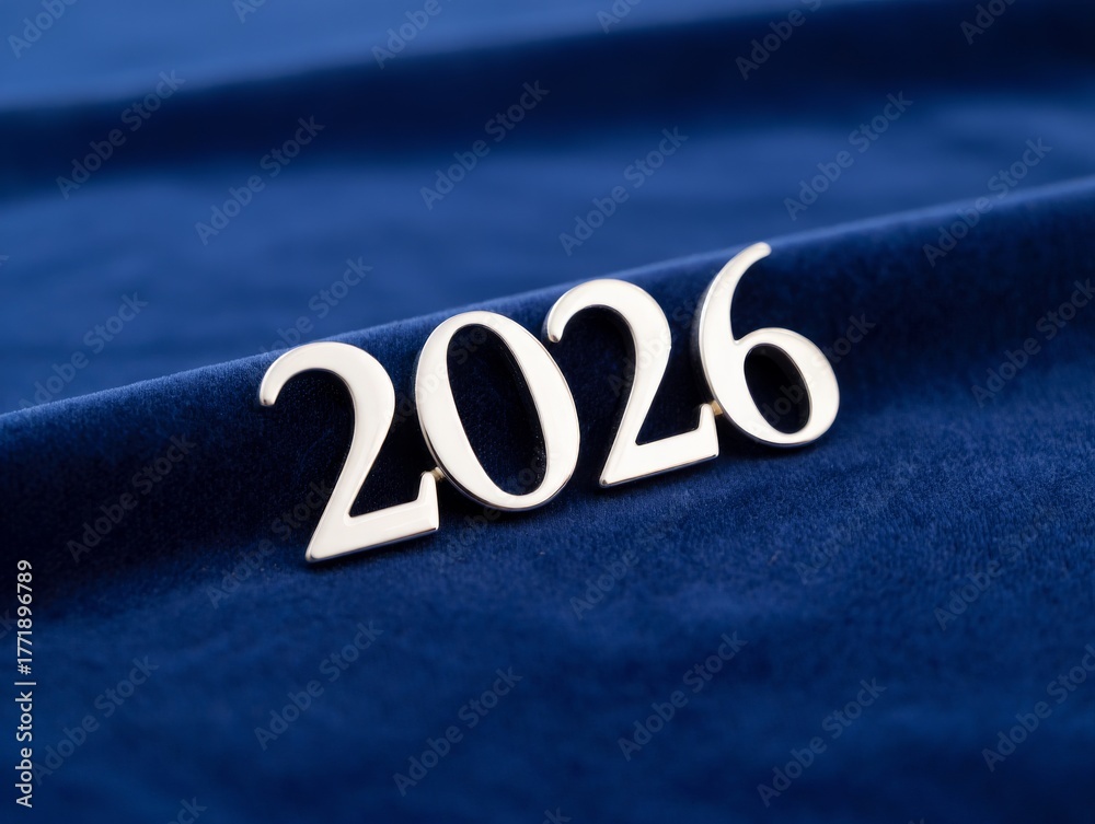 Shiny silver numbers of the year 2026 on luxurious blue velvet, perfect for planning, events, and business presentations #1771896789