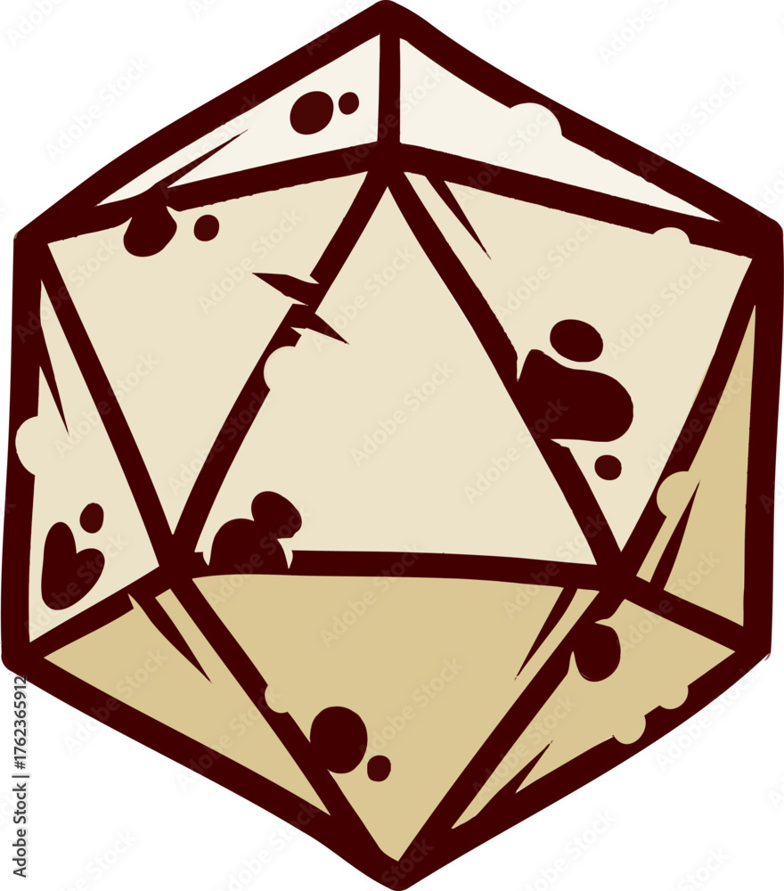 20 side dice for fantasy DD game. Tabletop role play strategy game sticker. Cartoon illustration #1762365912