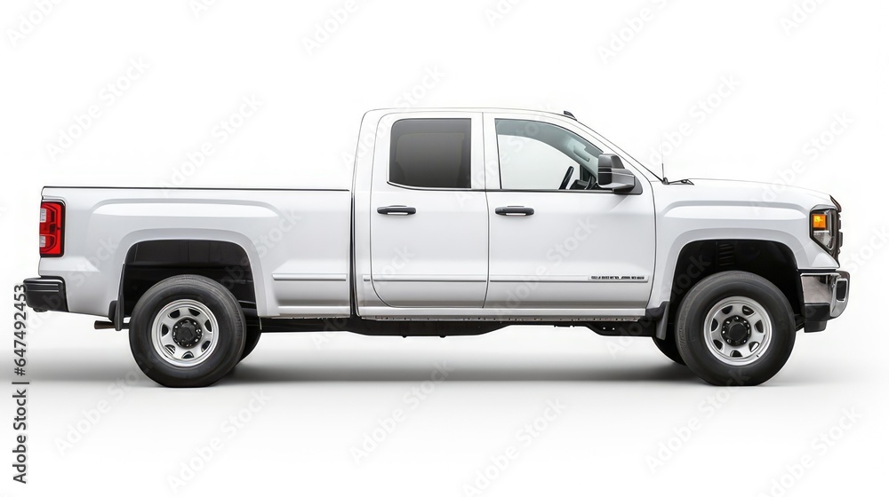 side view of white pick up truck on white background great for mockup and concepts. generative AI #647492453