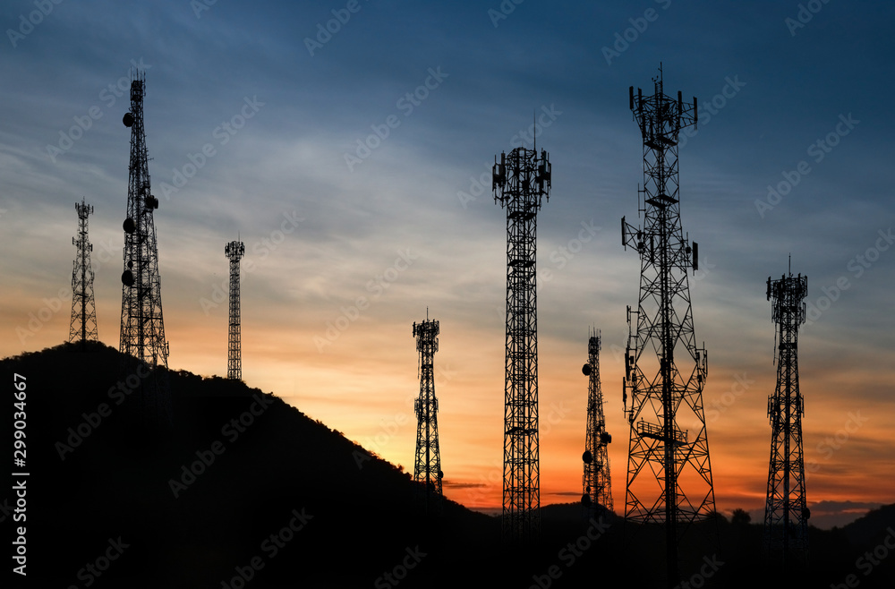 Signal and communication towers have a royal background such as the fall #299034667