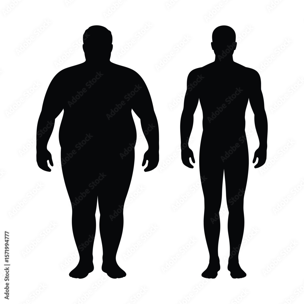 Silhouette comparison of an overweight person and a fit person side by side #1571994777