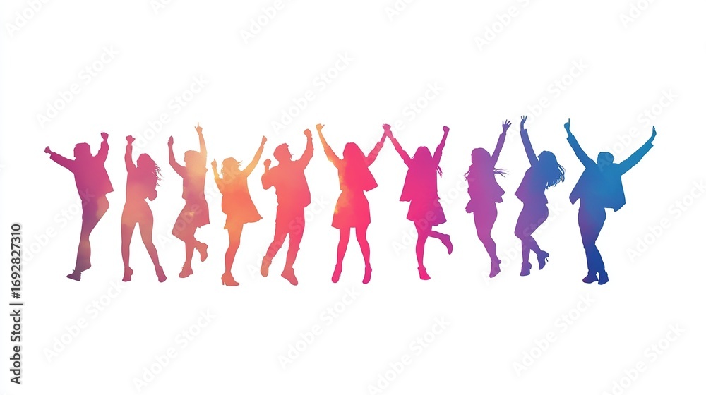 Silhouette illustration of people dancing at a party with a group of friends, isolated on white background #1692827310