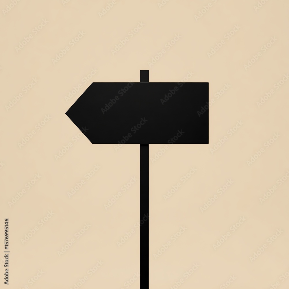 Silhouette of a blank directional signpost with a left-pointing arrow on a beige background. #1576995146